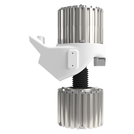 ESM hat zur Übertragung der Lasten eine Kombination aus Sandwich-Schichtfeder und Konuslager entwickelt, um den großen Biegemomenten im Bolzen entgegen zu wirken.